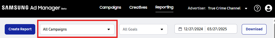 - To focus on a specific campaign or campaigns, select the All Campaigns drop down menu on the top left of the page and select the checkbox or checkboxes for the campaigns you are interested in.