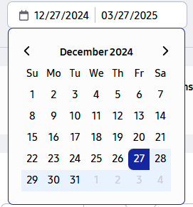To change the reporting period, select the calendar icon on the right hand side of the page and select a new start and end date.