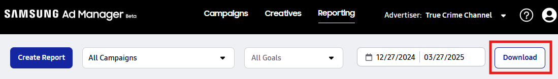 - Optionally, download the data captured on the interactive report by selecting Download on the top right hand corner of the page to generate a .CSV and download it to your device.